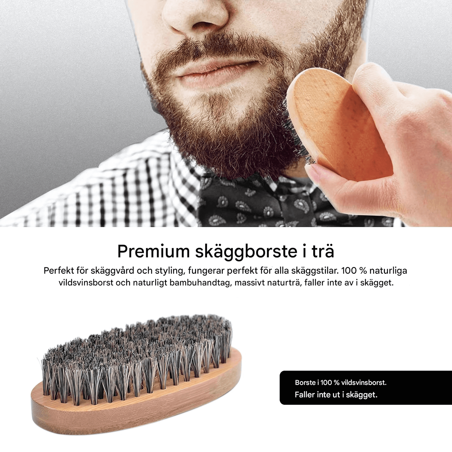 Borsten med täta svinborst och den dubbelsidiga träkammen är utformade för att reda ut trassel och fördela oljan jämnt. Resultatet kan bli ett skägg som känns mer följsamt och ser mer välvårdat ut.