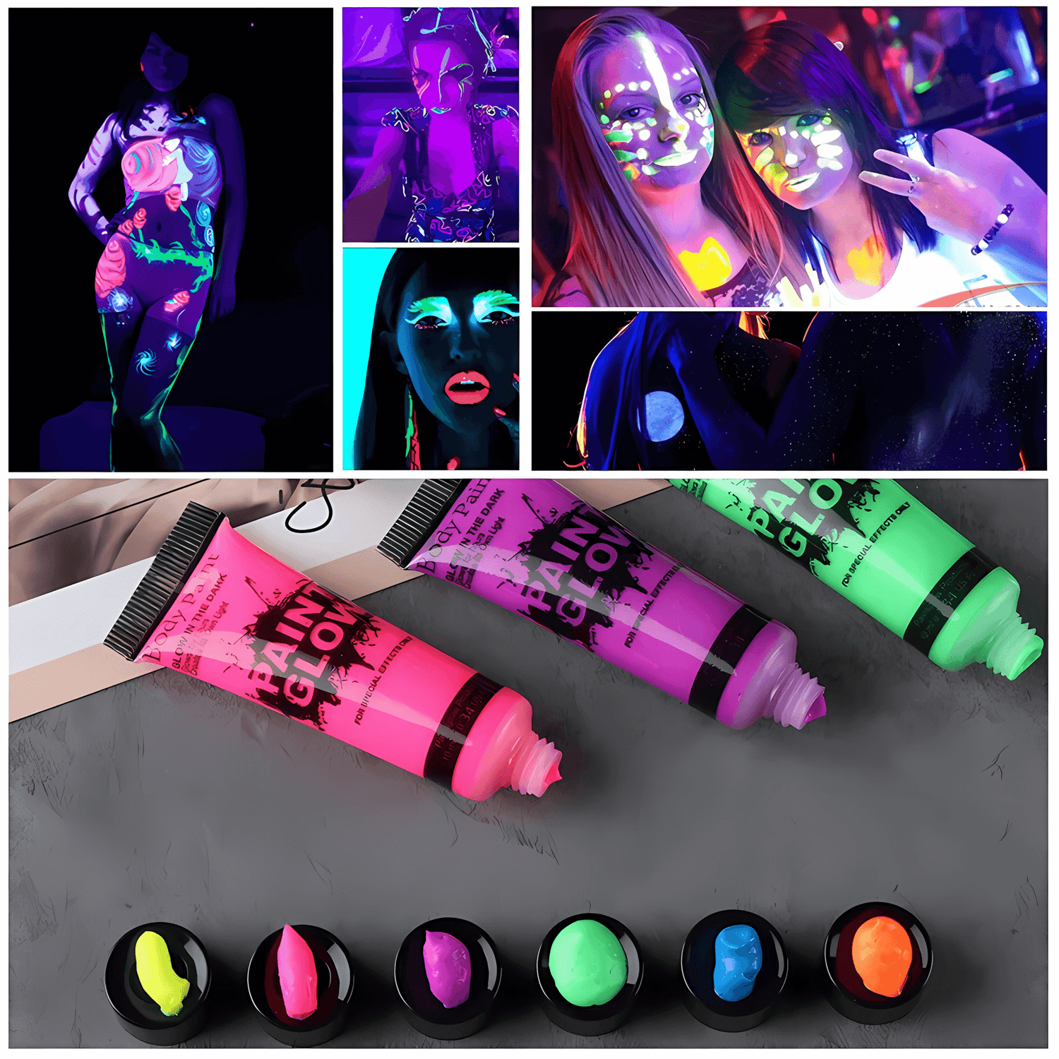NeonAura – Halloween Neon Fluorescerande UV Body Paint Set för Ansikte och Kropp, Glow in the Dark, Party & Festivalfärg