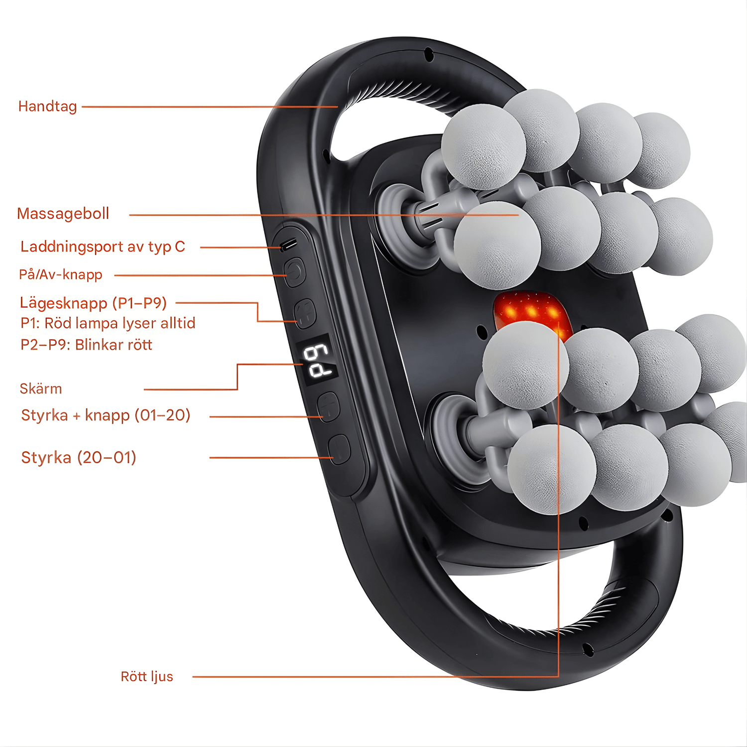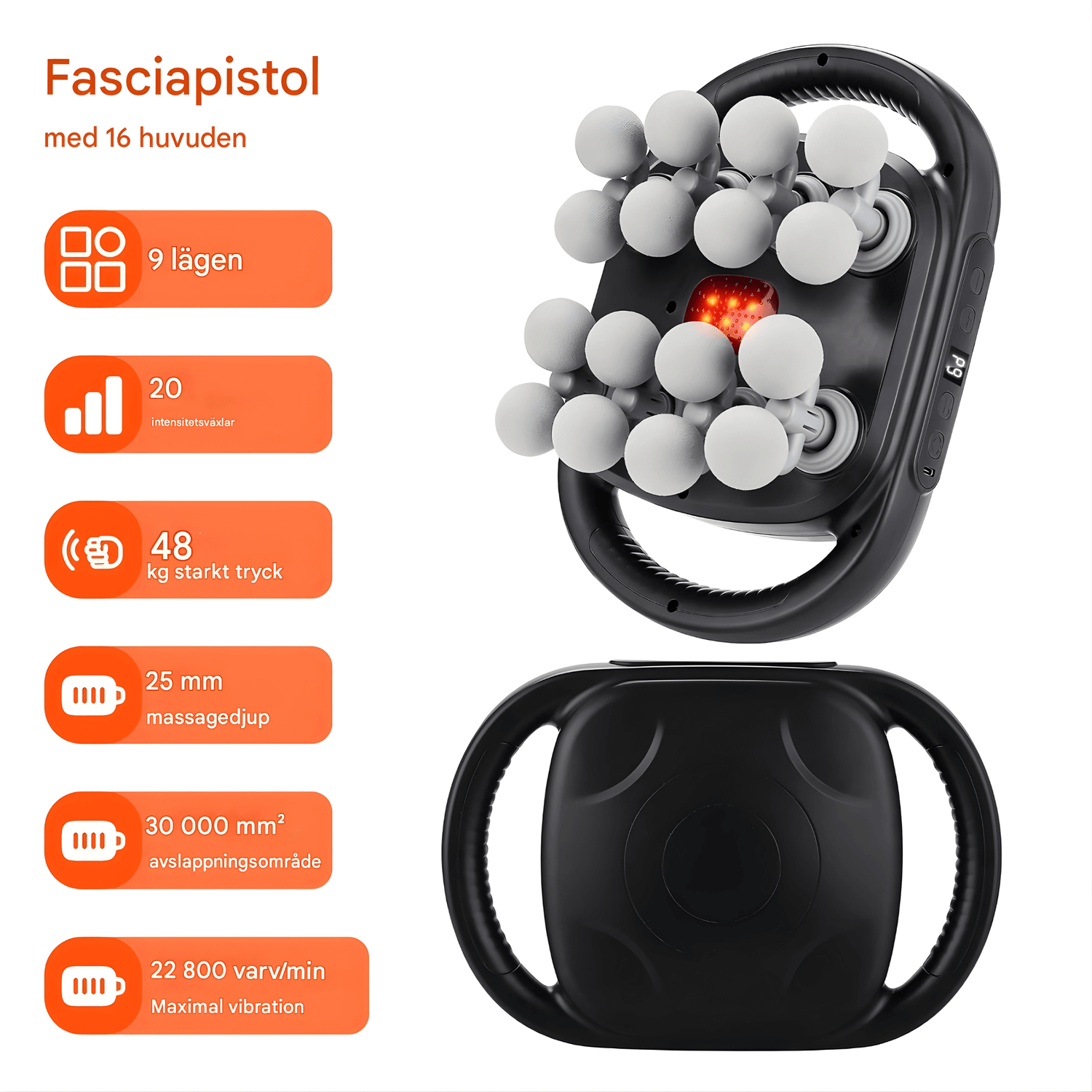 • 💆 16 utbytbara massagehuvuden – kan anpassas efter olika muskelgrupper