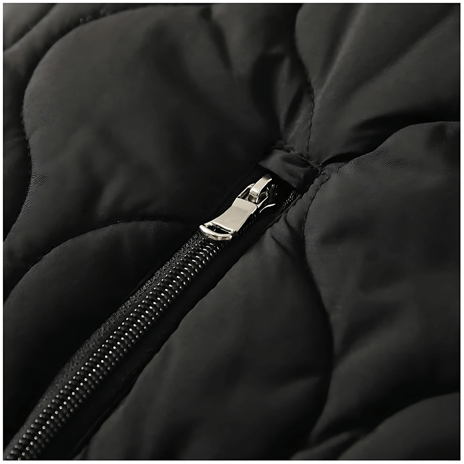 Den quiltade designen kan bidra till att hålla värmen jämnare runt kroppen och samtidigt ge ett stilrent uttryck. Strukturen kan även förstärka plaggets känsla av mjukhet och komfort.