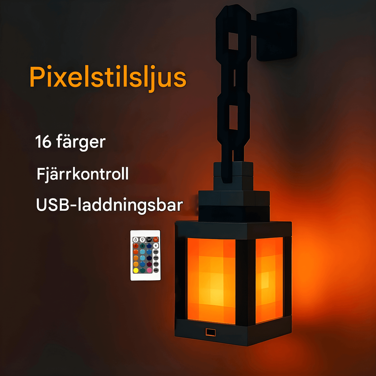SoulLantern – Pixelinspirerad Vägglampa med 16 Färger, Fjärrkontroll & USB-laddning för Sovrum och Dekorativ Atmosfär
