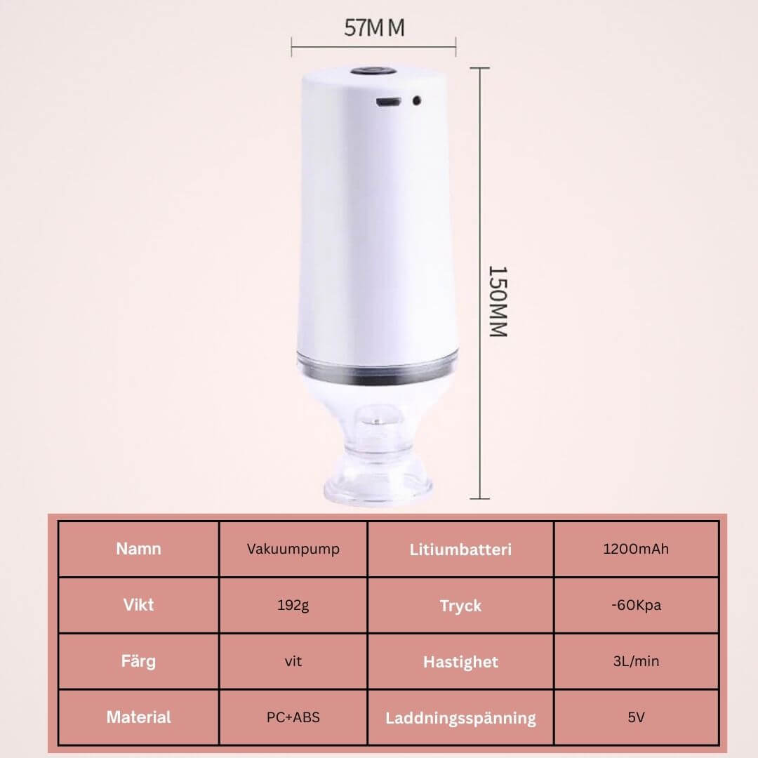 Ingen stress med batteribyten – denna vakuumpump laddas enkelt via USB och är alltid redo att användas, oavsett var du befinner dig.